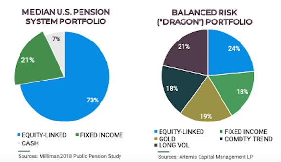 The Dragon Portfolio is much different than a boring old “Median US System Pension Portfolio”. Take a look.